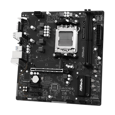The ASRock A620AM-HVS is a Micro ATX motherboard featuring an AMD AM5 socket, dual DDR5 slots, and multiple M.2 sockets for high-speed storage. It offers Gigabit LAN, HDMI output, and customizable RGB lighting, making it ideal for modern builds.