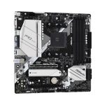 The ASRock B550M Pro4 motherboard supports AMD AM4 processors with 4 DDR4 slots, dual M.2 sockets, and multiple graphics outputs including HDMI and DisplayPort. Ideal for gamers and builders seeking reliable performance in a Micro ATX form factor.