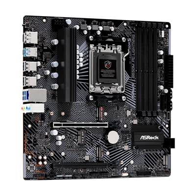 The ASRock B650M PG Lightning motherboard supports AMD AM5 processors with 4 DDR5 slots, 3 M.2 sockets, and a USB-C port. Enjoy enhanced gaming performance with 2.5GbE LAN and multiple connectivity options in a compact Micro ATX form factor.
