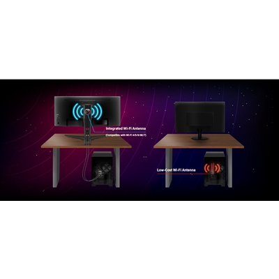 Phantom Gaming monitor equips with built-in Wi-Fi antenna. So, the Wi-Fi signal won’t be masked by the table. Now, connect the Wi-Fi antenna to your PC and enjoy gaming without latency!