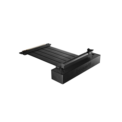 The be quiet! BGA12 PCIe 4.0 Riser Cable allows for clean vertical GPU mounting with a 200mm length. It features a foam support base to prevent sag and ensures full bandwidth for modern graphics cards, all in a sleek black design.