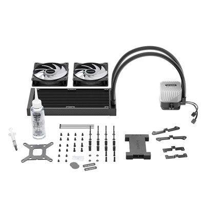 Impressive Performance: 240mm radiator and high-density fin stack for efficient heat dissipation. Stylish ARGB Design: Unique cooling block with extensive illumination options for stunning visual effects. Quiet Operation: State-of-the-art pump with a progressive IC for minimal noise. ARGB-PWM Hub: Synchronizes up to 6 ARGB components and PWM fans. Compatibility: Supports Intel 1851, 1700, 1200, 1150, 1151, 1155, and AMD AM5, AM4 sockets. Maintenance-Friendly: Easy-access refill port and included coolant bottle.