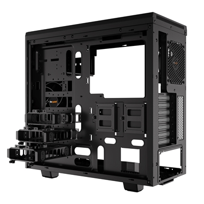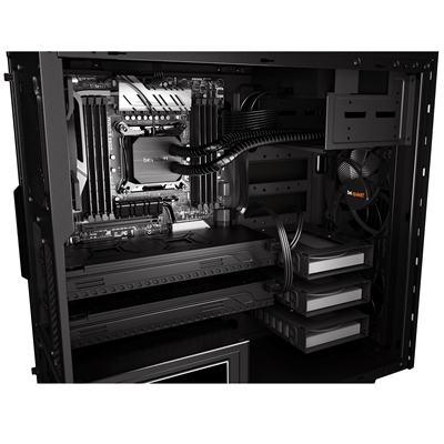 2 pre-installed Pure Wings 2 fans with 9 airflow-optimized fan blades reduce turbulence and increase air pressure: 120mm at the rear, 140mm at the front. Permits up to four additional cooling fans.