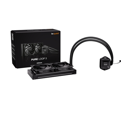 The be quiet! Pure Loop 3 Liquid CPU Cooler features a 240mm radiator and two high-speed PWM fans for optimal cooling performance. Designed for quiet operation and easy installation, it supports various CPU sockets and comes with a 3-year warranty.