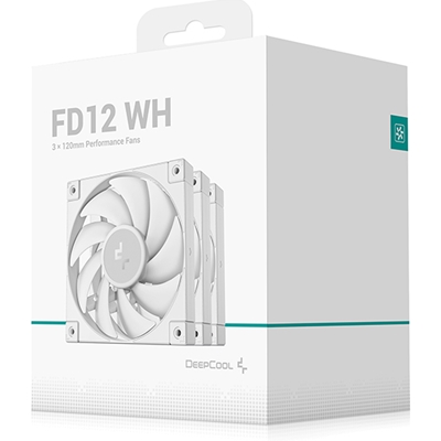 DeepCool FD12 120mm Case Fan 3-Pack, PWM Control, High Airflow, Low Noise, Hydro Bearing, White, Anti-Vibration Pads, 4-Pin Connector
