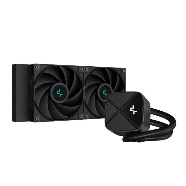 The DeepCool LS520S Zero Dark is a sleek 240mm liquid CPU cooler designed for optimal performance with Intel and AMD processors. Featuring durable aluminum construction and whisper-quiet fans, it ensures efficient cooling without distracting RGB lighting.