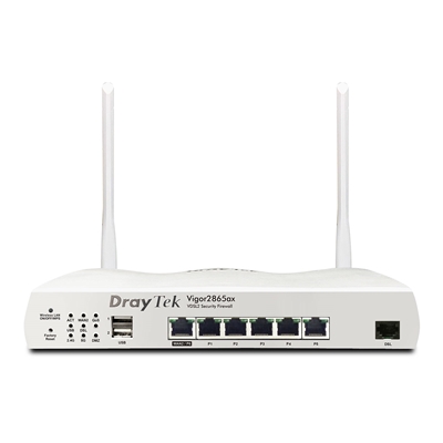 The Vigor 2865ax is a VDSL and Ethernet WAN router featuring VPN, advanced routing features, firewall, content filtering, bandwidth management and more. Connect the Vigor 2865 to Superfast Fibre with its integrated VDSL modem. Or connect to VirginMedia Cable and Ultrafast FTTP with Ethernet WAN.
