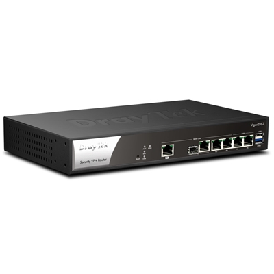 The DrayTek V2962-K Vigor 2962 is a high-performance wired router with dual-WAN capabilities, offering robust firewall protection and SSL VPN support for up to 50 users. Ideal for small offices, it features guest WiFi management and high availability for unint