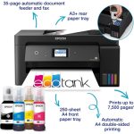 The Epson Ecotank ET-15000 is a compact, wireless A3 all-in-one printer designed for business. With ultra-low printing costs, fast speeds, and versatile media handling, it offers print, scan, copy, and fax capabilities, making it ideal for any office.