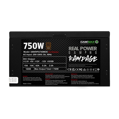 The GAMEMAX RPG Rampage 750W PSU features fully modular design for easy cable management, 80 Plus Bronze certification for high efficiency, and a quiet 14cm fan for effective cooling. Ideal for building a clean and powerful gaming PC.