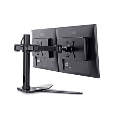 iiyama DS1002D-B1 Dual Desk Stand Monitor Arm, Desk Mount, Fits 2 x 30 Inch Flat Screens, Tilt, Swivel, Height, Rotation, inc Cable Management