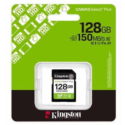Kingston Canvas Select Plus SD (SDXC) 128GB Memory Card – U1, V10, A1, 150MB/s R, W