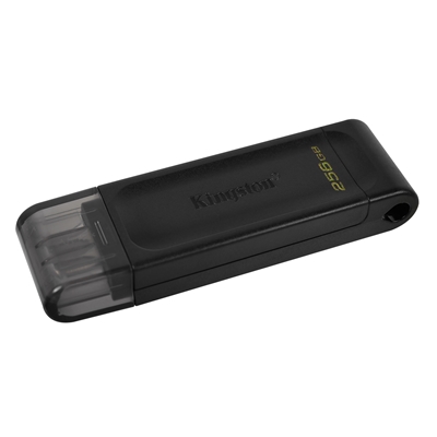 Kingston DT70/256GB DataTraveler 256GB USB Flash Drive, USB 3.2, USB-C, Gen1, 80MB/s, Cap Design, Black, Retail.
