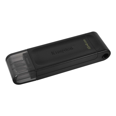 Kingston DT70/64GB DataTraveler 64GB USB Flash Drive, USB 3.2, USB-C, Gen1, 80MB/s, Cap Design, Black, Retail.