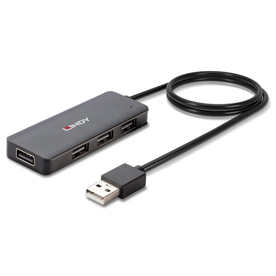 The Lindy 4 Port USB 2.0 Hub allows the user to connect 4 additional peripherals to a USB Type A equipped computer. Capable of data transfer speeds of up to 480Mbps, the hub is also backwards compatible with USB 1.1 and 1.0.
