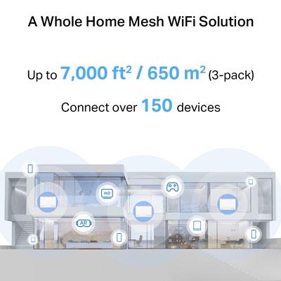 Halo mesh units work as a unified network to fill your home up to 7,000 ft2 / 650 m2 (3-pack) ; 5,000 ft² / 460 m² (2-pack) .