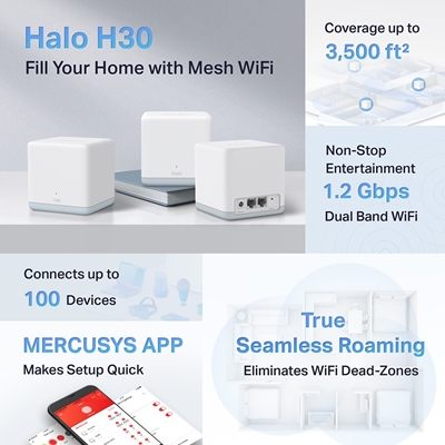 Mercusys Halo H30 AC1200 Whole Home Mesh Wi-Fi System (3 Pack)