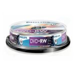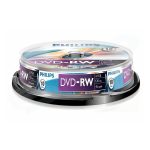 The Philips DVD-RW 4X 10PK Spindle offers reliable recordable media with a capacity of 4.7GB. Ideal for data storage, these discs provide a write speed of 4X and come in a convenient spindle package for easy access.
