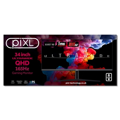 Experience immersive gaming with the piXL 34-inch UWQHD UltraWide monitor. Featuring a 165Hz refresh rate, 1ms response time, and 100% sRGB colour gamut, it delivers stunning visuals and smooth gameplay. Perfect for both gaming and productivity.