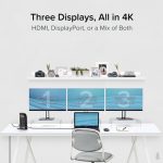 Featuring 3x DisplayPort ports, and 3x HDMI ports — standardize on one or use a mix of both to extend your desktop across three 4K monitors @ 60Hz with USB4 / Thunderbolt 4 hosts via Alt Mode and this laptop docking station — no dongles required