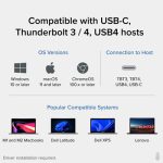 USB-C dock is compatible with Windows 10 or later, ChromeOS 100.x or later, and macOS 11+ systems with Thunderbolt 4, Thunderbolt 3, USB4, and USB-C. Requires installation of DisplayLink Drivers. HDCP not supported