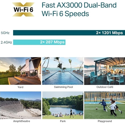 Delivers dual band speeds of up to 3 Gbps powered by the latest WiFi 6 technology.