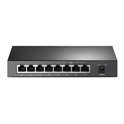 The TP-Link TL-SG1008P is an 8-port gigabit desktop PoE switch featuring 4 PoE+ ports with a total power budget of 64W. Ideal for powering IP cameras and access points, it offers plug-and-play setup, QoS for traffic prioritization, and a durable metal casing.
