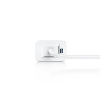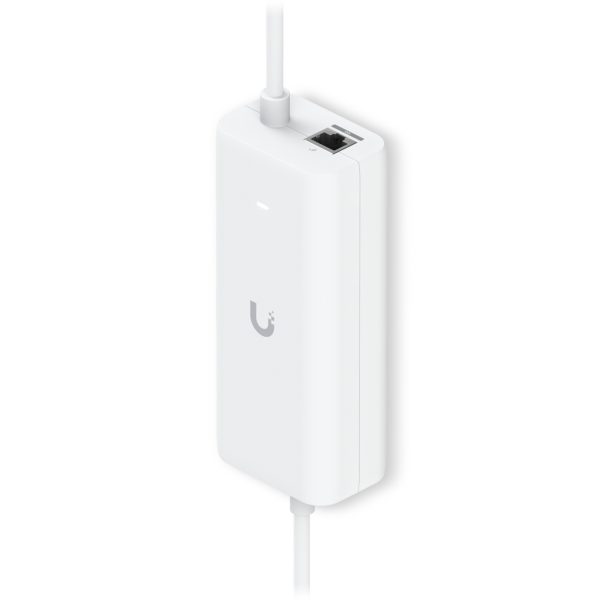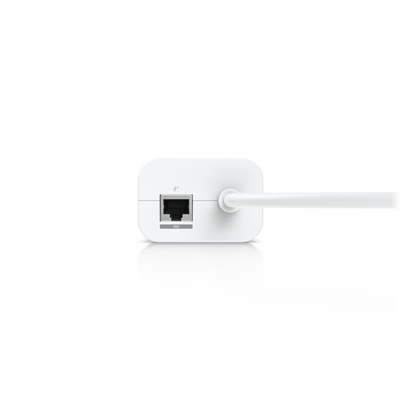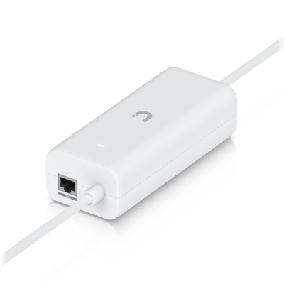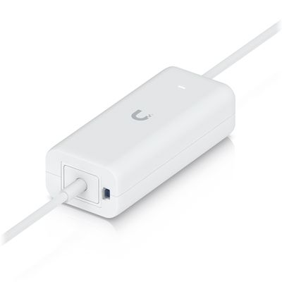 An AC adapter with integrated PoE, enabling the UniFi Cloud Gateway device to support PoE output on a single port.