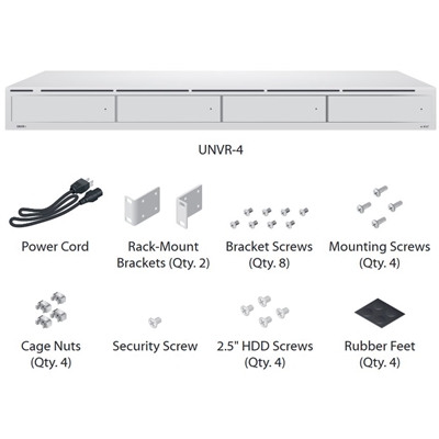 The UniFi NVR is an enterprise network video recorder that integrates an NVR, the UniFi Protect software, and a 4-drive bay. UNVR unifies enterprise-class data protection and scalable storage with simple Plug and Play integration using the intuitive UniFi Protect software. From a desktop computer or mobile device, you can access your surveillance recordings from virtually anywhere using the intuitive graphical user interface. The mobile app is available for iOS and Android-based devices. The drive bays are easily accessed from the front panel, so hard drive mounting and maintenance are simple. Using four 8 TB drives in a RAID 5 configuration, the UNVR can provide up to 30 days of 4k video storage for 15 cameras or Full HD video storage for 50 cameras.