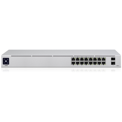 The Ubiquiti USW-16-POE is a 16-port managed Gigabit network switch with PoE support, featuring a touchscreen display for easy monitoring and a redundant power system for reliability. Ideal for robust networking needs.