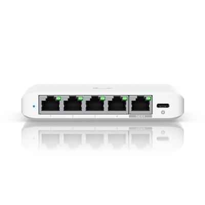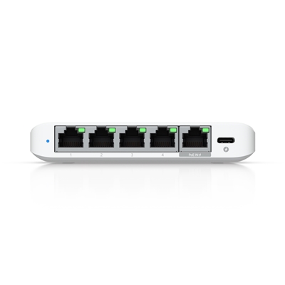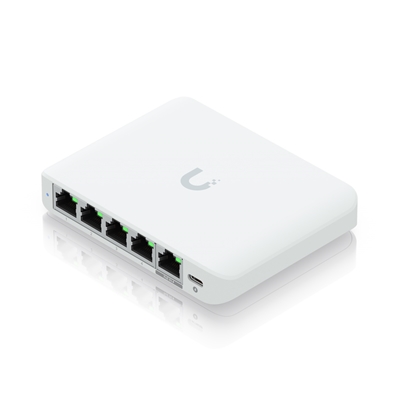 The Ubiquiti USW-FLEX-2.5G-5 is a compact 5-port managed switch, offering 2.5GbE speeds. It can be powered via PoE or USB-C, making it versatile for various setups. Ideal for efficient networking in tight spaces.