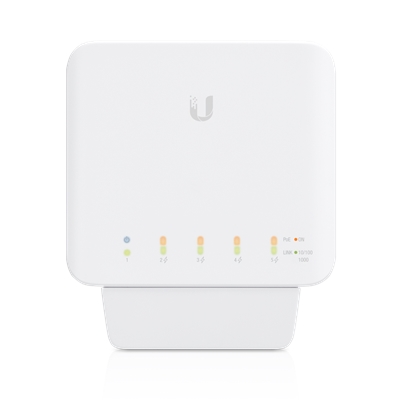 The Ubiquiti USW-FLEX is a 5-port managed Gigabit PoE switch designed for indoor and outdoor use. With auto-sensing 802.3af PoE support and versatile mounting options, it provides reliable power and connectivity for your network devices.