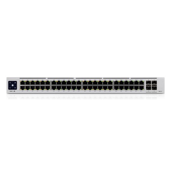 UniFi Switch Pro 48 is a fully managed Layer 3 switch with (48) Gigabit Ethernet ports. (4) 10G SFP+ uplinks offer link aggregation for higher capacity and increased availability.