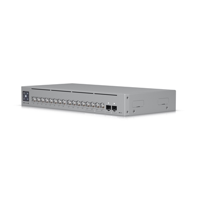 The Ubiquiti USW-PRO-MAX-16-POE is a 16-port Layer 3 managed POE switch featuring 2.5 GbE and 10G SFP+ ports. With silent fanless cooling and versatile mounting options, it delivers high performance and efficient power management for your network.
